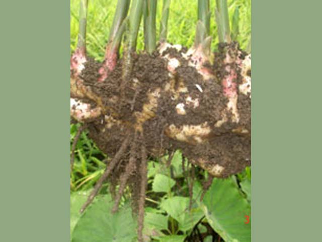 温度条件は、高温多雨な熱帯から温帯で作られています。鹿児島県本土では、冬の寒さで枯れます。塊茎は休眠は無く18℃以上になると芽が動き始め萌芽(芽が出る)します。